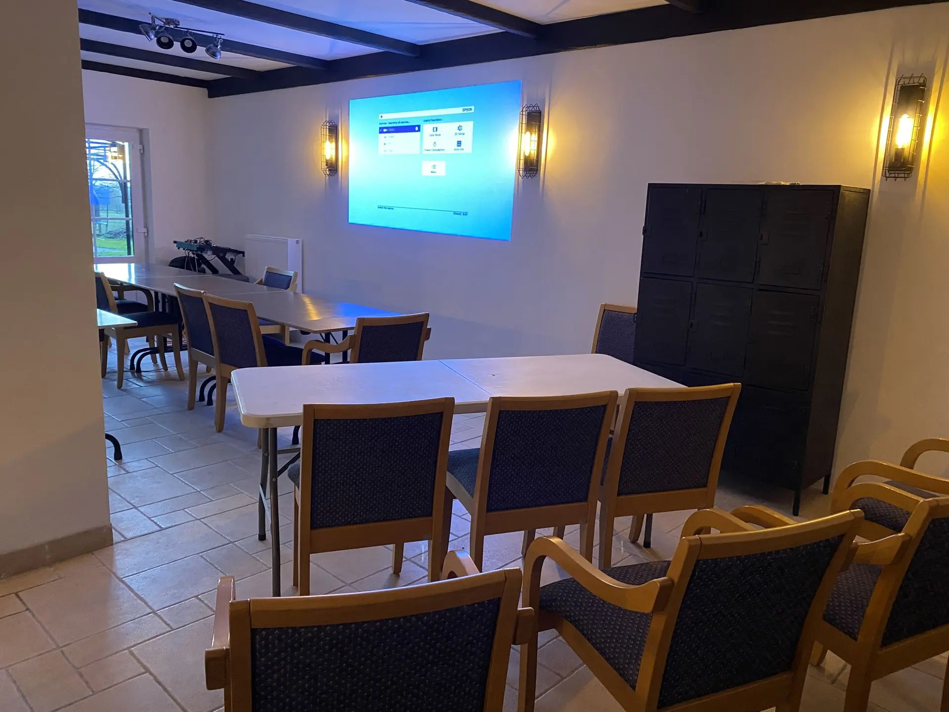 Wilt u met uw team even volledig 'out of the box' denken en buiten de eigen werkomgeving vergaderen? Onze vergaderzaal zorgt voor een rustige en aangename sfeer en is voorzien van didactisch materiaal (flipchart, projector en projectiescherm) dat nodig is voor de perfecte brainstorm. Ze leent zich ook uitstekend uit voor andere type bedrijfsvergaderingen en trainingen. Catering mogelijk.